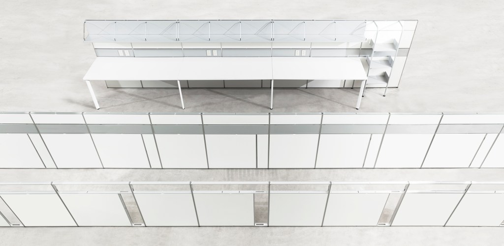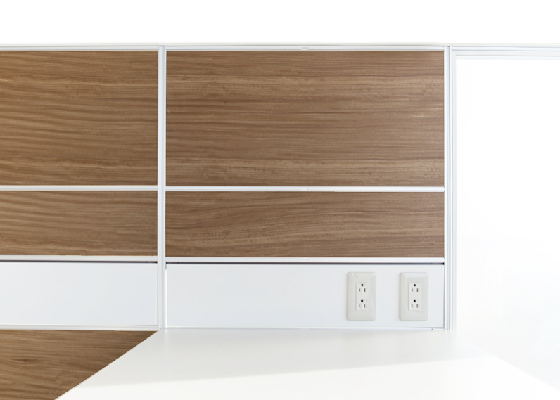 可掀式線槽板,除了滿足大量的走線需求外,線路亦可藉由直向、橫向線槽做無限延伸,線路完全隱藏在屏風中不外露。面板具有快速拆卸及安裝的特性,除利於佈線施工外,也利於即時的維修及平時的保養需求。